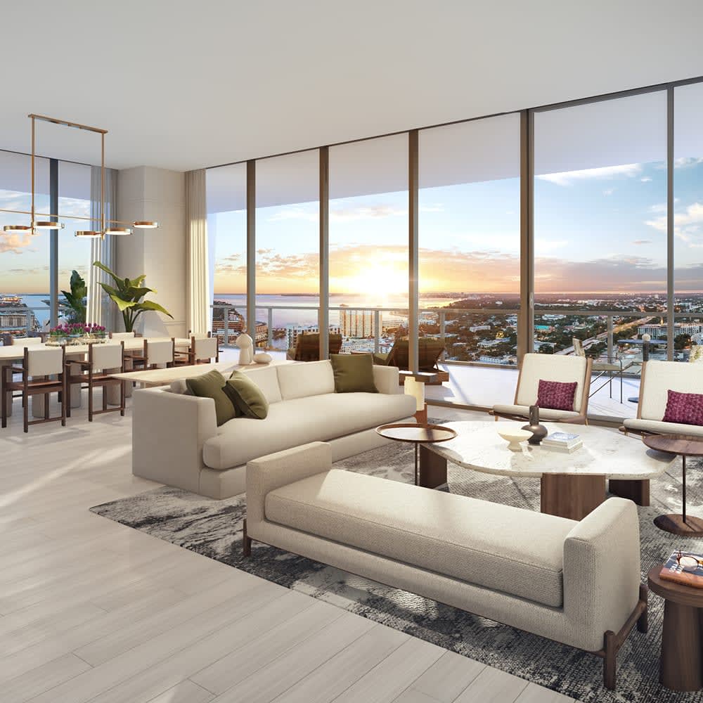 Pendry Residences Tampa offers spacious interior living with thoughtful touches and custom finishes, private elevator access, and expansive terraces. All with sweeping city and water views from every Residence.